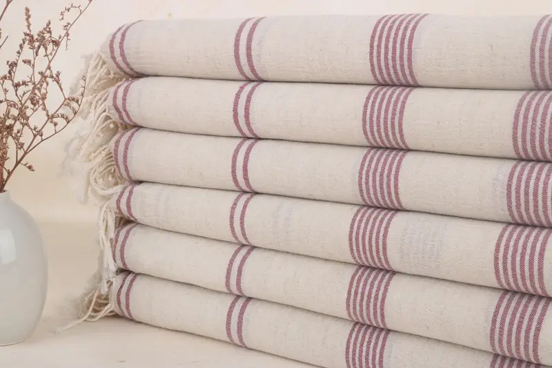 Characterized by superior absorbency, the 36x71 Inches Purple Cotton Towel is composed of 100% Organic Turkish Cotton, ensuring optimal softness and breathability. Resulting in a lightweight yet durable product, the towel weighs 290 grams and measures precisely 70x36 inches (180x90 cm), with minor variations due to hand weaving.