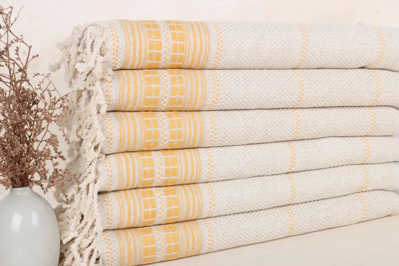 Characterized by their fiber composition of 100% organic Turkish cotton, these linen hand towels are engineered for exceptional absorbency. Resulting in a lightweight and space-saving design, these towels are perfect for various uses, including gym, bathroom, kitchen, and tea towels. Each towel, measuring 20x40 inches or 50x100 cm with a minor hand-weaving tolerance of 1-2.5 cm, weighs 120 grams and offers versatility.