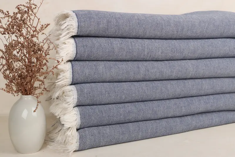 The product is characterized by its %100 Organic Turkish Cotton composition, ensuring high absorbency and softness. Each towel measures 24x40 inches or 60x100 cm, weighing approximately 100 grams, with slight variations due to hand-weaving tolerances of 1-2.5 cm. Customers can customize towels with embroidery, labels, and fringeless options, with large orders facilitating custom design integration.