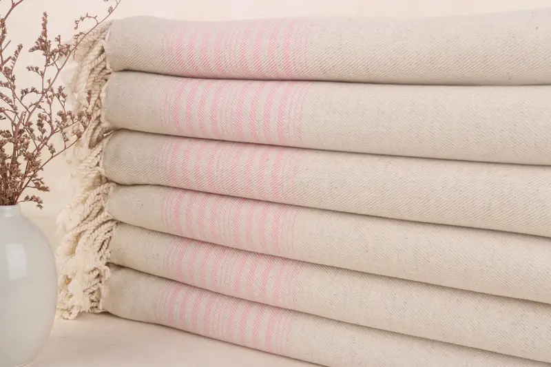 These bath towels are woven from 100% organic Turkish cotton, ensuring superior softness, quick drying, and lightweight properties while being sand-free and absorbent. Each piece measures 79x40 inches or 100x200 centimeters, weighing approximately 315 grams. Due to the handmade nature, sizes may vary slightly within a tolerance of 1-2.5 centimeters.