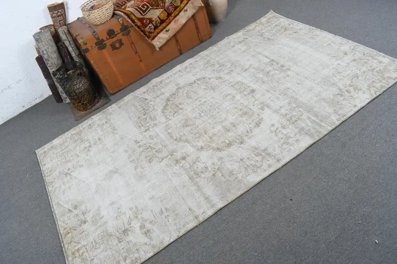 This rug spans 4.1x7.2 ft, presenting a pristine white base interwoven with rich brown accents. The Persian pattern adds a timeless touch, combining tradition with modern sensibilities. Each fiber tells a story, crafted with meticulous care to ensure durability and a genuine vintage feel.