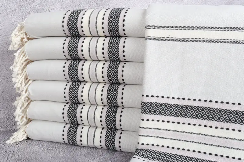 Organic Turkish cotton characterizes these towels, ensuring high absorbency and durability. The Turkish Towel, measuring 40x71 inches or 100x180 centimeters, weighs 300 grams, with hand-weaving tolerances of up to 5 centimeters. Embroidery customization options are available through the monogram selection, with pre-shrunk towels ready for immediate use. Free shipping applies to orders over USD 50, with orders from the US fulfilled from a US warehouse and international orders shipped from Turkey. Returns are accepted on non-personalized items, w...