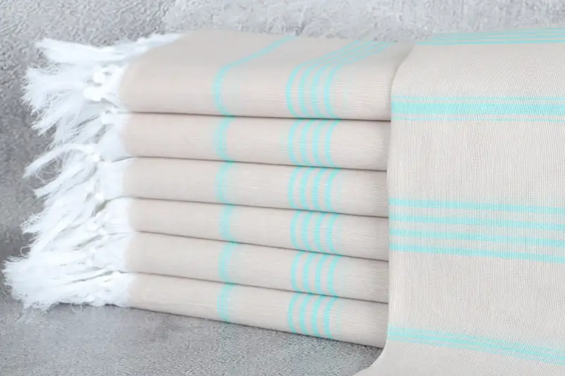 Characterized by hand-weaving, the Turkish towel ensures a dual-sided utility owing to its meticulous weaving techniques. Comprised of eco-friendly premium Turkish cotton, it demonstrates excellent absorbency and softness, which enhances with each wash. Resulting in a towel that measures 40x71 inches or 100x180 centimeters, the weight of this towel is approximately 240 grams, with a tolerance of ±2 inches or 5 centimeters due to hand-weaving.