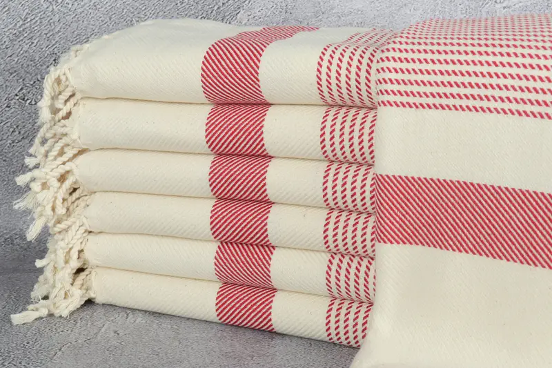 Organic Turkish cotton, utilized in the creation of these towels, ensures superior absorbency and durability. Characterized by a size of 40x71 inches or 100x180 centimeters, these towels have a tolerance of 2" or 5cm due to hand-weaving techniques. Weighing at 400 grams, these towels are both versatile and lightweight.