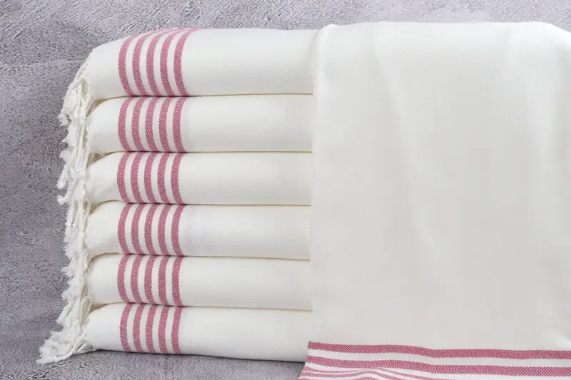 The Turkish Bath Towel is characterized by its eco-friendly premium Turkish cotton composition, ensuring superior absorbency and lightweight characteristics. Fabric dimensions are specified as 40x71 inches or 100x180 centimeters, with a permissible weaving tolerance of 2 inches or 5 centimeters. This towel weighs 330 grams, resulting in a balance between bulk and portability.