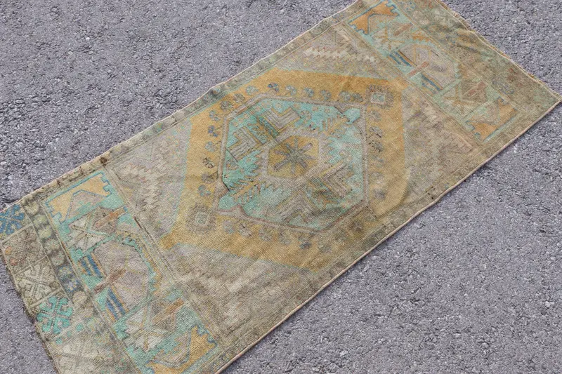 Handmade Turkish Oriental Rug 1.7x2.7 ft , Brown Blue Vintage Wool RugS***** E**- 08/11/2025