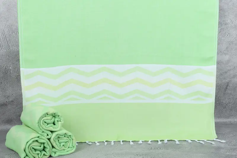 Turkish towels are characterized by their lightweight and flat-woven construction, ensuring minimal space usage, which makes them optimal for travel. Organic Turkish cotton composition enhances absorbency, resulting in increased softness with each wash. Hand-woven tolerances may vary by up to 2 inches or 5 centimeters due to traditional weaving techniques.