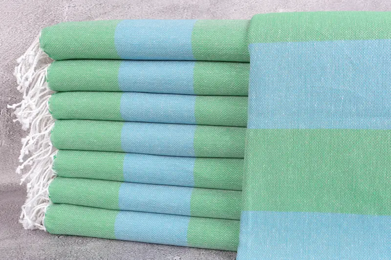 Characterized by the use of organic Turkish cotton, the towels are known for their high absorbency and eco-friendly attributes. Resulting in a versatile range of uses, these towels maintain a 40x71 inches dimension, with a tolerance of up to 5 cm due to traditional weaving techniques. Weighing approximately 302 grams, each piece ensures durability and comfort.
