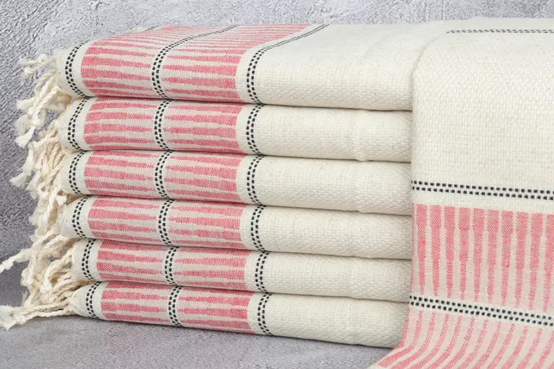 Organic Turkish cotton is utilized in the construction of these towels, ensuring high-quality material. The towels, characterized by their soft and lightweight properties, are 20x40 inches or 50x100 centimeters in size, with a tolerance of up to 2 inches or 5 centimeters due to weaving techniques. Weighing 120 grams, these hand-woven items exhibit meticulous craftsmanship and attention to detail.