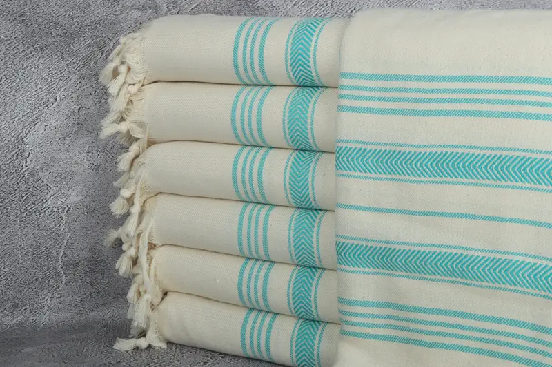 The Turkish towels, characterized by their organic Turkish cotton composition, offer superior absorbency and versatility. Ensuring an eco-friendly product, the beach towel dimensions are 70x40 inches or 100x180 centimeters, with a weight of 330 grams. Hand-weaving tolerances result in slight variations of up to 2 inches or 5 centimeters.