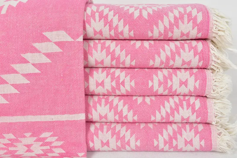 The Turkish Peshtemal Towels, hand-loomed with Turkish cotton, are renowned for their exceptional absorbency, ensuring quick drying and superior softness. Weighing approximately 330 grams, these towels measure 40" x 70" (100cm x 180cm) with a tolerance of ± 5%. Their hand-woven construction provides a unique texture and durability.
