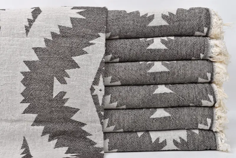 Premium Turkish cotton, renowned for its high absorbency and rapid drying capabilities, is utilized in the production of these towels. The fibers ensure efficient water absorption, resulting in a lightweight yet highly functional product. Weighing approximately 290 grams, the Turkish towel features a size of 36x71 inches (90x180 cm), with potential variations of up to 5 cm. Characterized by meticulous hand-weaving on traditional looms, each towel exhibits slight dimensional tolerances.
