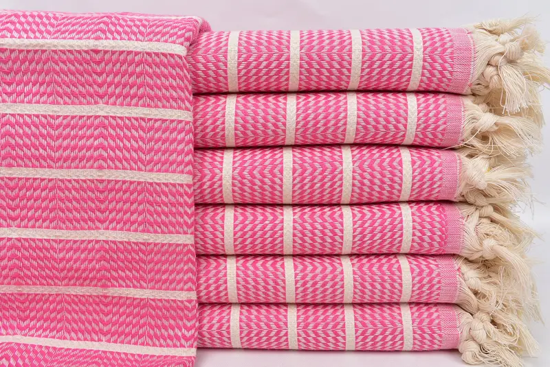 Premium Turkish cotton, ensuring high water absorbency and rapid drying. Characterized by a fiber composition that results in a towel that is softer and more durable than regular cotton. The Turkish towel dimensions are 40x71 inches or 100x180 cm, with some tolerance for variations up to 5 cm. Weighing approximately 440 grams, the product is handcrafted on traditional looms.