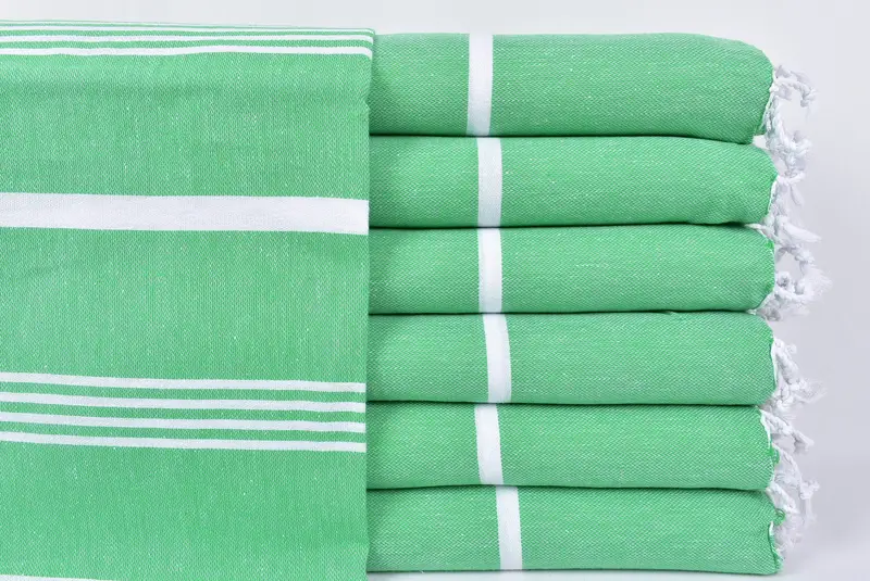 Characterized by high-quality Turkish cotton, these towels ensure superior absorbency and rapid drying. Resulting in a lightweight design, the towels feature dimensions of 40x71 inches (100x180 cm) with permissible tolerances of 1-2.5 cm. Weighs approximately 266 grams, they are meticulously hand-woven on traditional Turkish looms.