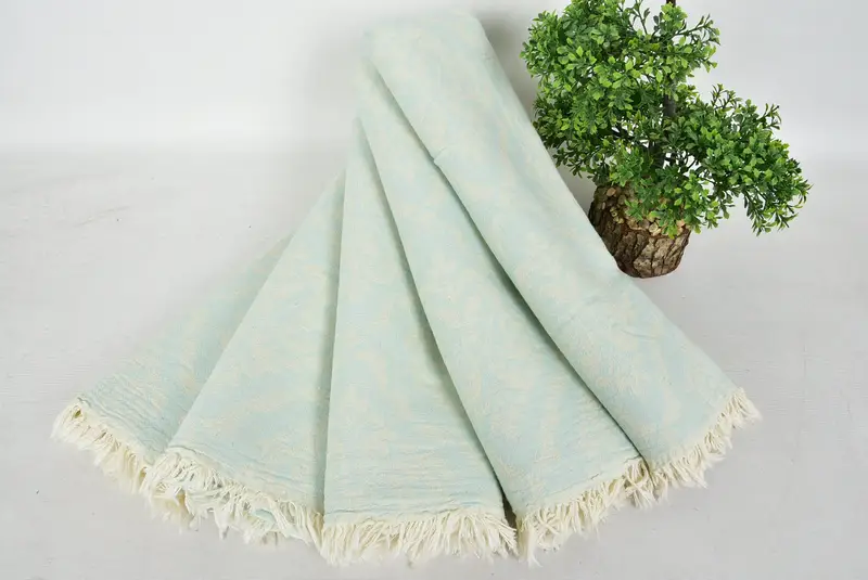 Turkish towels are crafted from Turkish cotton, renowned for its exceptional absorbency and rapid drying capabilities, ensuring it outperforms traditional towels. Characterized by its substantial size of 36" x 70" (90cm x 180cm), with a tolerance of ± 5%, these towels weigh approximately 330 grams. These towels are meticulously hand-woven, providing a luxurious feel and durability.