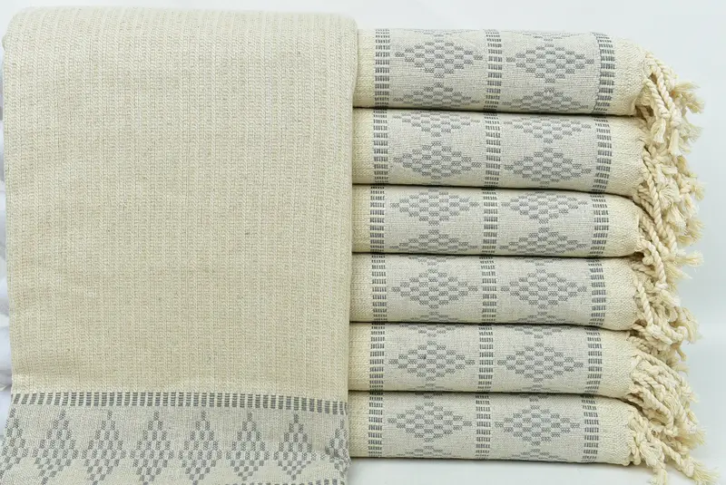 Premium Turkish Cotton, characterized by high water absorbency and quick drying times, ensuring it outperforms regular towels. The towels are meticulously crafted from 36x71 inches dimensions, translating to 90x180 cm, with a slight tolerance of 1-2.5 cm, and weigh around 480 grams. Hand-weaving involves traditional techniques, resulting in varied sizes and weights.