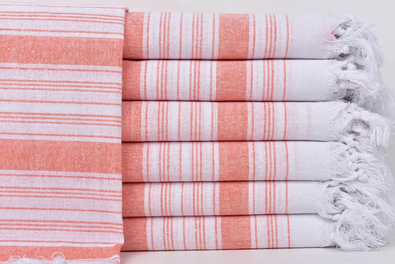 Premium Turkish cotton fibers ensure exceptional absorbency and quick drying, characterized by their superior softness compared to regular towels. Turkish Towels measure 32x67 inches (80x170 cm) with a tolerance of ±1-2.5 cm, weighing approximately 220 grams. Each towel is meticulously hand-woven on traditional looms, ensuring consistent quality and customization options.