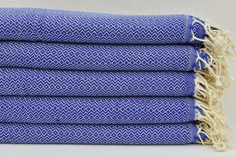 Turkish Peshtemal is characterized by its premium Turkish cotton, ensuring a high level of softness and absorbency. Resulting in quick drying, the towels are woven and hand-tied fringes by the artisan, maintaining a consistent quality. Dimensions are 70" L x 40" W or 180cm x 100cm, with a tolerance of ± 5%.