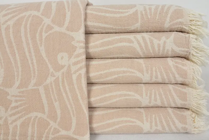 Premium Turkish cotton characterizes the towel, ensuring exceptional absorbency and rapid air-drying. The towel's dimensions are 36" W x 70" L, equating to 90cm x 180cm with a tolerance of ± 5%, weighing around 330 grams. The hand-weaving process allows for minor variations in size.