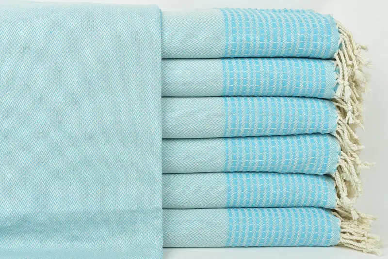 The Turkish towels are distinguished by their fiber composition, ensuring high absorbency. Characterized by their traditional hand-loomed technique, they are crafted from premium Turkish cotton, resulting in a superior texture and rapid drying capability.