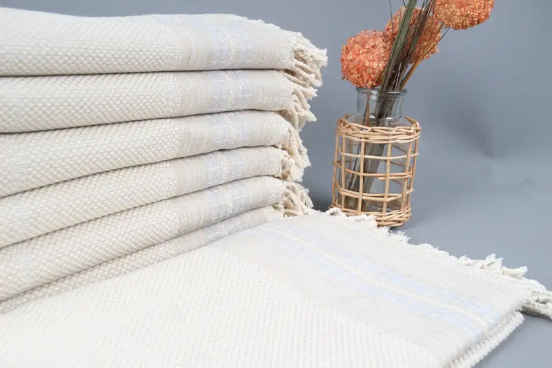 Characterized by its use of organic cotton yarn, this Turkish Bath Towel ensures a high level of absorbency and durability. Measuring 38x65 inches (95x165 centimeters) with a tolerance of ±2.5 cm due to hand-weaving techniques, the towel weighs 420 grams, offering substantial utility for various purposes. Embroidery customization options are available for personalization, with pre-shrunk status and an easy return policy enhancing user experience.