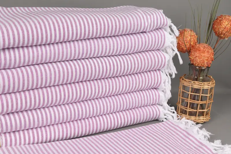 Composed of organic cotton yarn, this Turkish bath towel ensures durability and absorbency. Characterized by dimensions of 40x63 inches (100x160 centimeters) with a tolerance of up to 2 inches (5cm) due to hand-weaving techniques, it weighs 200 grams.