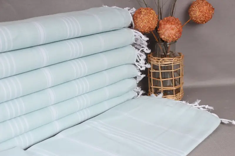 Multi-purpose Turkish beach towels are designed with a hand-weaving technique that allows for use on both sides, versatile for various applications from kitchen to beach use. The towels are pre-shrunk and become so...