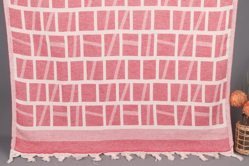 This product, a 34x69-inch hand-woven Turkish towel, is fabricated from high-quality organic cotton yarn, ensuring durability and breathability. Weighing 360 grams, the towel exhibits precise weaving dimensions, with potential deviations of up to 2 inches due to manual processes. Characterized by its multi-purpose functionality, the towel caters to a variety of uses, from bath towels to beach wraps.