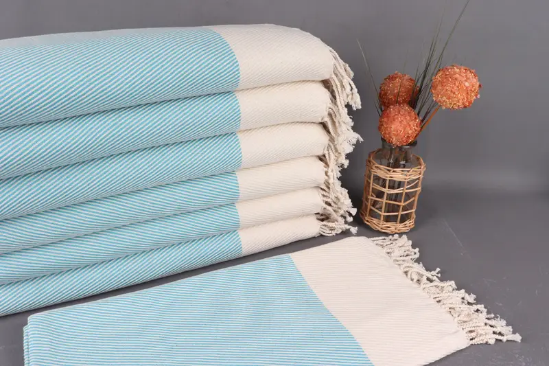 Turkish Bath Towel Organic Cotton Turquoise Beige, 40x71 Inches