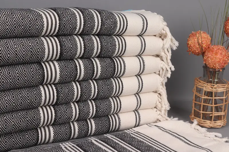Bachelor Gift, Housewarming Gift, Bridesmaid Gifts, 98x92 Cotton Striped Design Towel, Family Gift Basket, Woven Blanket, Customized Turkish Blanket- 15/10/2025