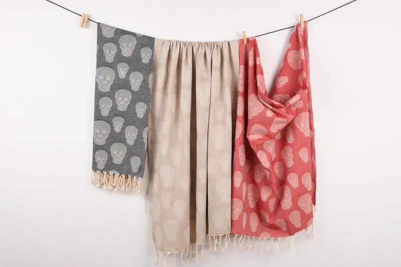 Turkish beach towels are characterized by their use of organic cotton yarn, ensuring breathability and softness. Fabric dimensions are 67x36 inches or 170x90 centimeters, with a tolerance of 0.5-1 inch (1-2.5 centimeters) due to hand-weaving techniques. Weighing 350 grams, these towels offer substantial absorbency.