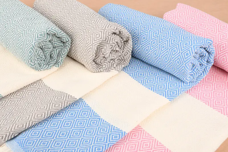 Organic cotton yarn ensures superior absorbency and durability for your towels. Characterized by a standard size of 40x71 inches (100x180 centimeters), each handmade Turkish beach towel weighs 420 grams. Hand-weaving tolerances allow for a variation of up to 2 inches (5 cm).