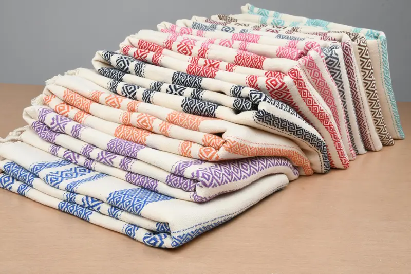Dimensions for these towels measure 70x36 inches (180x90 centimeters). Each piece may vary by up to 5 cm due to manual weaving techniques, ensuring a personalized fit. The towels are pre-shrunk, maintaining their size after washing.