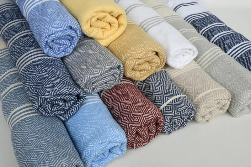 Turkish cotton towels are woven from high-quality organic cotton yarn, ensuring softness and durability. Characterized by a weight of 370 grams and dimensions of 70x40 inches (180x100 centimeters), these towels feature a hand-weaving tolerance of up to 5 centimeters in size. Embroidered with custom text or logos, these towels are pre-shrunk, ready for immediate use. Each order offers free shipping for orders over 35 USD, ensuring quick and hassle-free delivery. Returns and exchanges are accepted to ensure customer satisfaction.