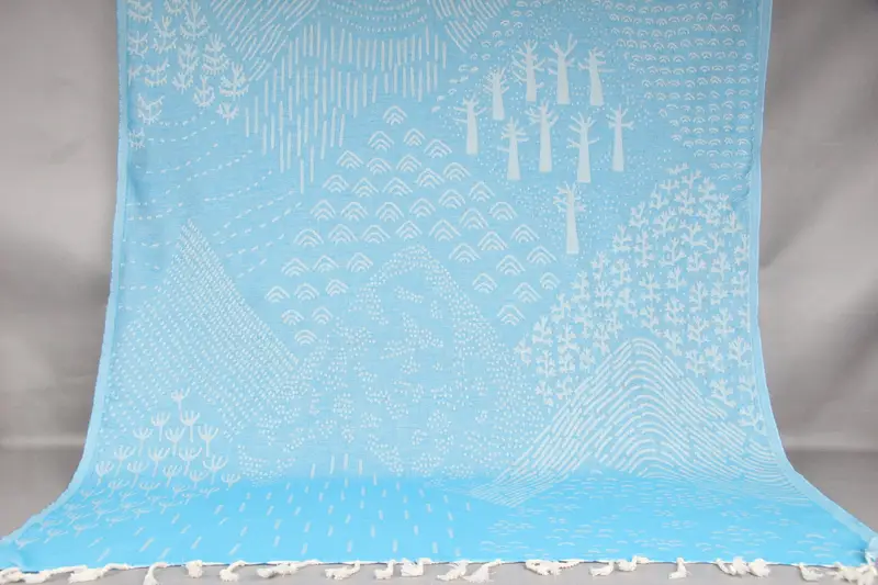 Woven from high-quality organic cotton yarn, these Turkish beach towels ensure optimal absorbency and durability. Measuring 36x67 inches (90x170 centimeters) with a tolerance of 2 inches (5 centimeters), they weigh 260 grams. Hand-weaving techniques result in a product characterized by precision, despite minor size variations.