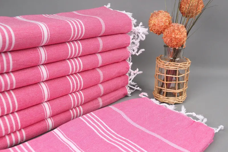 Turkish towels are woven using organic cotton yarn, ensuring durability and environmental friendliness. Characterized by a flat-weaving technique, these multi-purpose towels can be utilized in various settings, including kitchens, bathrooms, beaches, and travels.
