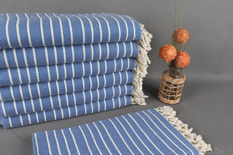 Turkish beach towels are distinguished by their organic cotton yarn material, ensuring superior absorbency and durability. These towels, characterized by their meticulous hand-weaving, measure precisely 40x71 inches (100x180 centimeters) with a tolerance of up to 2 inches (5 centimeters). Weighing at 425 grams, they offer versatility in multiple settings due to their lightweight and compact nature.