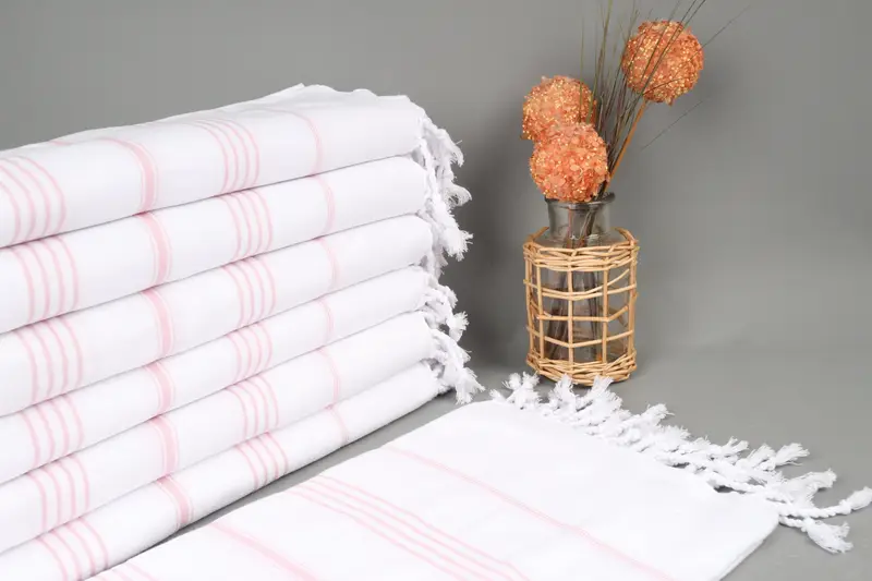Turkish beach towels are crafted from organic cotton yarn, ensuring a soft and absorbent material. Dimensions of the towel are 40x71 inches (100x180 centimeters), weighing approximately 300 grams. The size may vary by up to 2 inches (5 centimeters) due to the hand-weaving process.