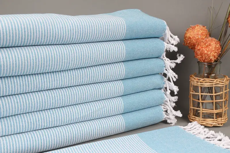 Turkish towels are crafted from organic cotton yarn, ensuring high-quality absorbency and a soft texture. Resulting in a towel that becomes progressively softer with each wash. Dimensions measure 18x40 inches (45x100 centimeters) with a manufacturing tolerance of up to 2.5 cm in either direction. The towel weighs 100 grams, designed for versatility in various settings.