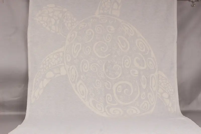 Turkish beach towels are woven from organic cotton yarn, ensuring a high-quality and comfortable texture. Specified dimensions are 40x71 inches (100x180 centimeters), with a tolerance of up to 2 inches (5 cm) in either direction. The weight of each towel is standardized at 400 grams.