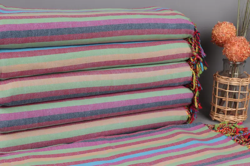 Bachelor Gift, Housewarming Gift, Bridesmaid Gifts, 98x92 Cotton Striped Design Towel, Family Gift Basket, Woven Blanket, Customized Turkish Blanket- 15/10/2025