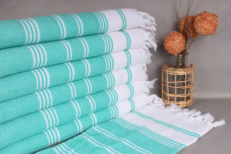 Ensuring durability and softness, this Turkish hand towel is woven from organic cotton yarn, resulting in a lightweight, flat-woven fabric. Measuring 18x40 inches (45x100 centimeters) with a tolerance of up to 2 inches (5 centimeters) due to hand-weaving, this towel weighs 110 grams. Both sides of the towel are usable, offering versatility for various household needs, including kitchen, bath, and travel.