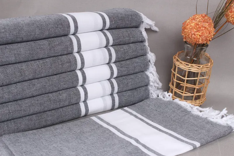 Characterized by a blend of organic cotton yarn, the Turkish towel ensures high absorbency and durability. Resulting in a finished product that adheres to specified dimensions of 40x71 inches (100x180 centimeters), with a weight of 290 grams, the hand-woven nature of the towel allows for slight variations of up to 2.5 centimeters.