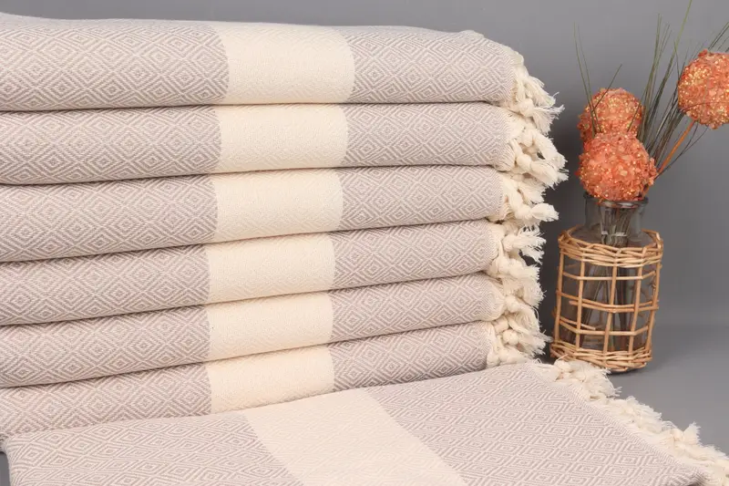 Turkish cotton towels ensure durability and breathability due to their organic cotton yarn composition. The towels, weighing 420 grams, measure 40x71 inches (100x180 cm), with a hand-weaving tolerance of up to 2 inches (5 cm). As a result, each towel is unique, ensuring personalized gifting.