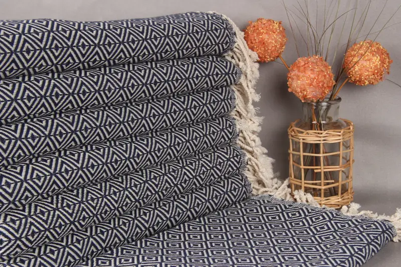 Turkish cotton yarns ensure superior absorbency and durability, providing an excellent texture and longevity. Resulting in a versatile product, the towel dimensions are 40x67 inches (100x170 cm), weighing 420 grams. Hand-weaving tolerances may cause size variations of up to 2 inches (5 cm).