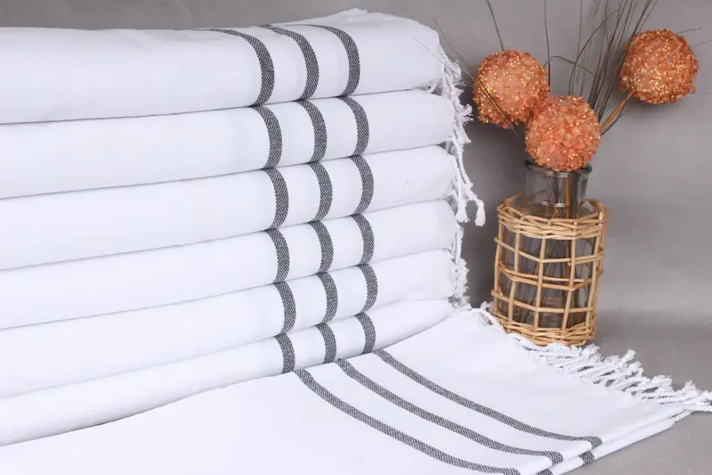 These hand towels are made from organic cotton yarn, ensuring superior absorbency and durability. Each towel measures 18x40 inches (45x100 centimeters) with a weight of 130 grams, with a weaving tolerance of up to 2 inches (5 centimeters).