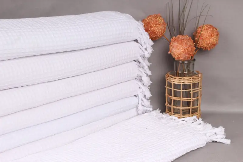 Fiber composition ensures that the 36x67 inches white cotton towel is both soft and highly absorbent, making it suitable for multiple uses around the home. Resulting from hand weaving, the size tolerance can vary by up to 5 cm, with a weight of 300 grams. Embroidery customization is available, and the towels are pre-shrunk, ensuring durability and ease of use. Orders are shipped worldwide via FedEx, DHL, or UPS, with free shipping for orders over 35 USD. Returns and exchanges are accepted with ease, prioritizing customer satisfaction.