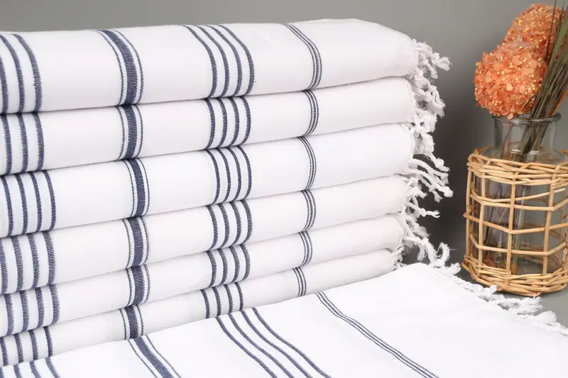 Characterized by its multifunctionality, this Turkish towel can be utilized as kitchen towels, bath towels, and travel companions, among others. Its flat-woven nature allows it to be rolled up easily, m...