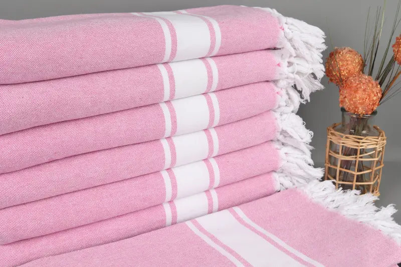 Turkish beach towels are characterized by their organic cotton yarn composition, ensuring superior absorbency and durability. Crafted with 40x71 inches (100x180 centimeters) dimensions, these handmade towels have a weight of 290 grams. The hand-weaving process introduces a tolerance of up to 2 inches (5 centimeters) in size variations.