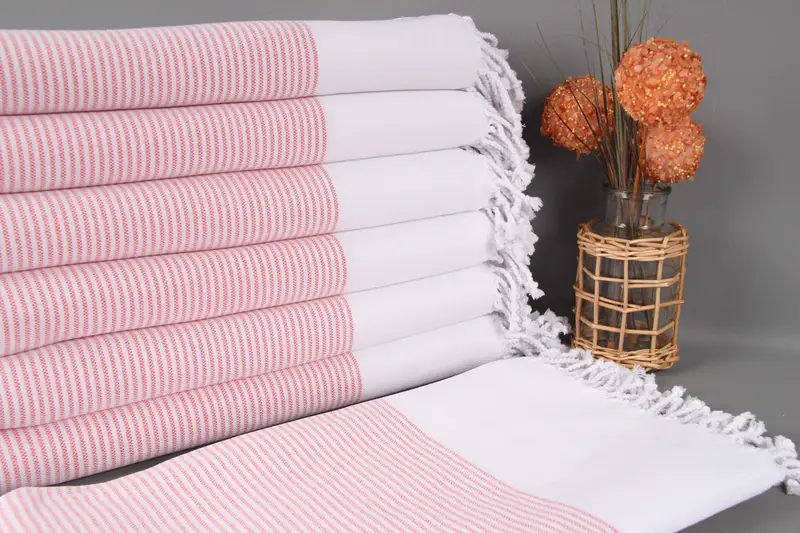 Vermilion towels offer customization options, allowing embroidery of names or logos. Pre-shrunk prior to delivery, these towels provide convenience right out of the package. Free shipping is available for orders over 35 USD, with worldwide delivery in 3-5 days.
